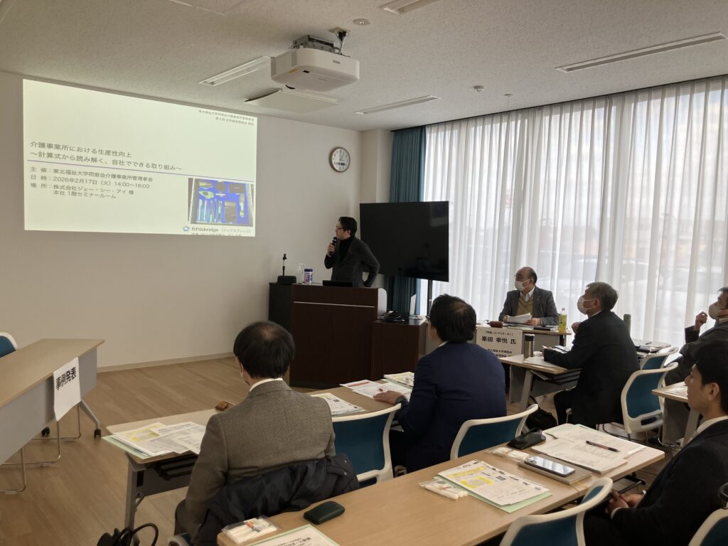 2月17日㈫午後に、会員事業所&協賛団体「第3回合同懇談会」を、宮城県富谷市の㈱ジェー・シー・アイ本社セミナールームをお借りして開催しました。寒い中、会員及び紹介者19名・協賛団体会員23名、合計42名と、多数ご参加いただきました。会員事業所・協賛団体会員双方から、事業所経営に役立つ4つの事例発表を行い、意見交換を行うなど、充実した懇談会になりました。